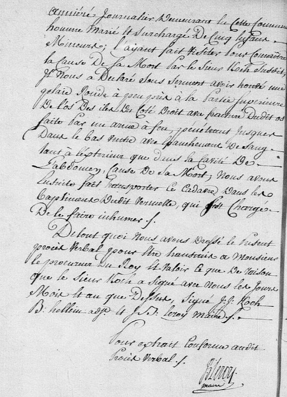 En lieu et place du traditionnel acte de décès dressé en Mairie, quelle ne fût pas ma surprise de découvrir un compte rendu du sieur Kock, officier de santé et médecin légiste, prévenu par le fermier Vermelle !