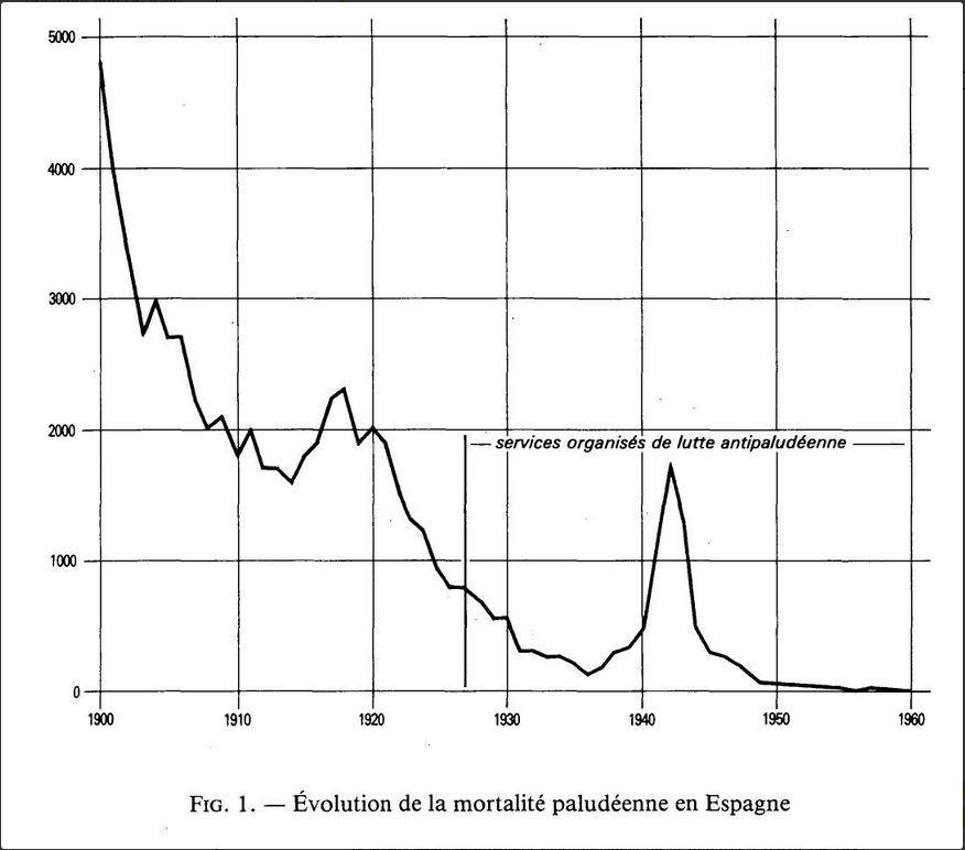 Au début du XIXème siècle, l’Espagne connut une météo catastrophique combinant vagues de fortes chaleurs et d’inondations. Avec une conséquence immédiate, la prolifération dans des régions devenues marécageuses, de l’Anopheles Labranchiae, espèce de moustique endémique des côtes espagnoles et vecteur de la malaria.
