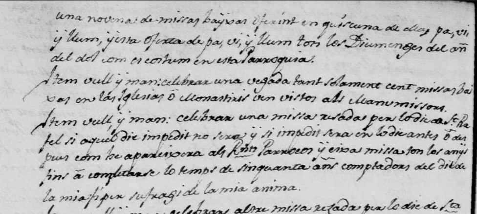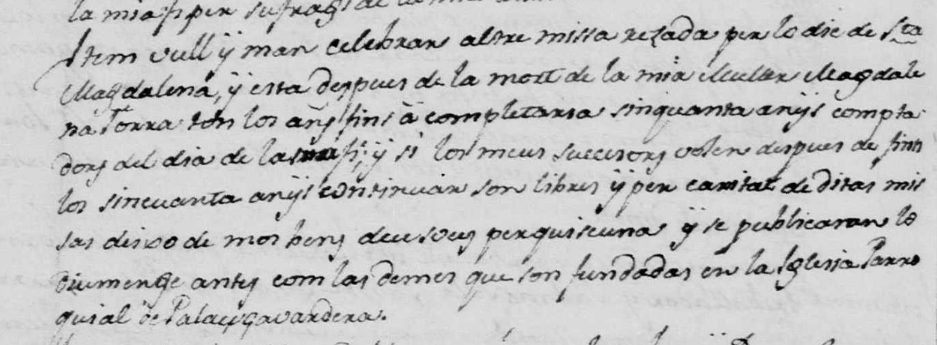Il y donne pouvoir à son fils Pere et à sa femme Magdalena de faire exécuter son testament.