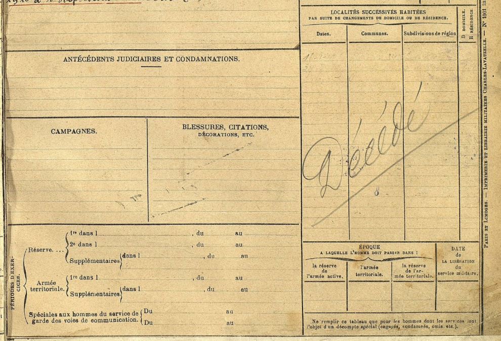 On apprend dans son registre matricule qu’Ulrich sera réformé en 1914 pour une insuffisance mitrale et aortique avec crise d’asystolie. Il déménage à Enghiens-les-Bains, le 8 novembre 1916, unique station thermale de l’Ile de France, probablement pour se soigner?