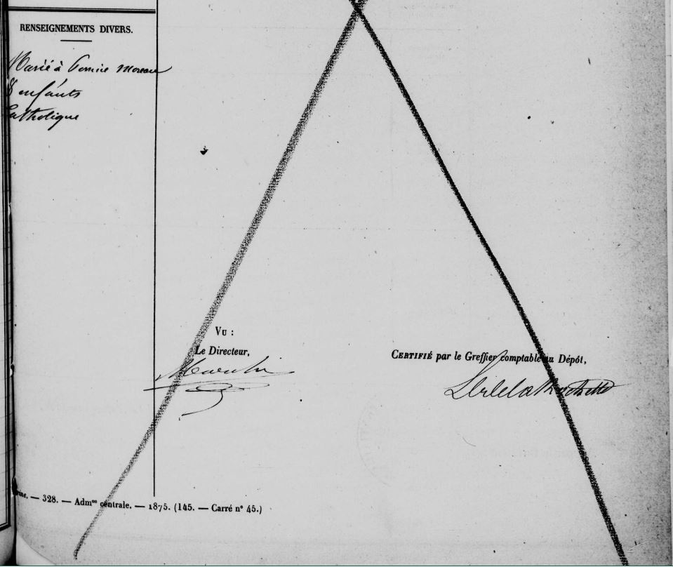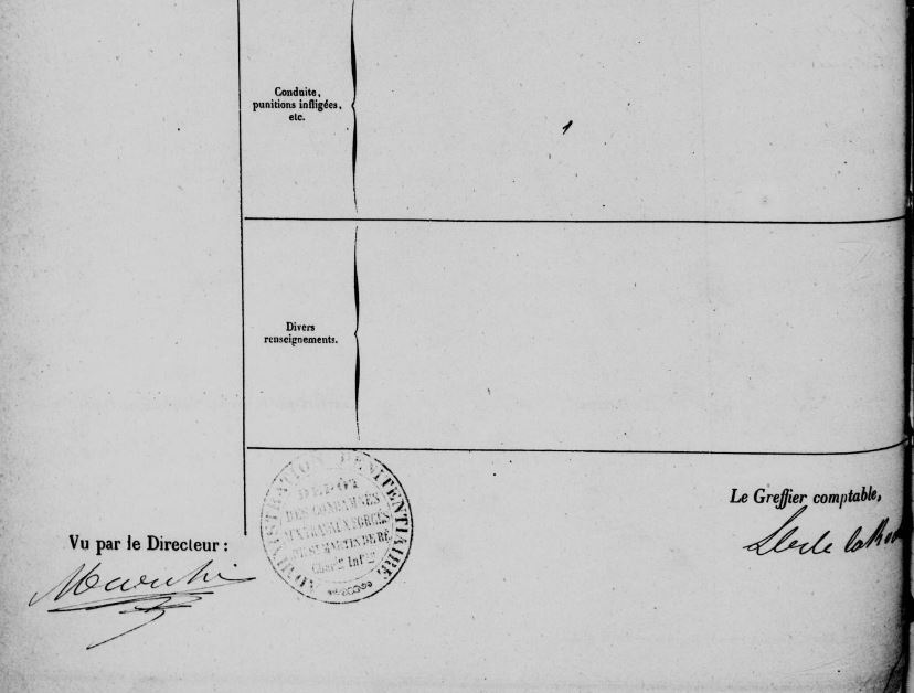 Il fait alors appel mais son pourvoi en cassation est rejeté le 05/08/1875. Le 17/09/1875, il est écroué sous le numéro 2102 et envoyé au dépôt dans l’attente de l’exécution de sa peine.