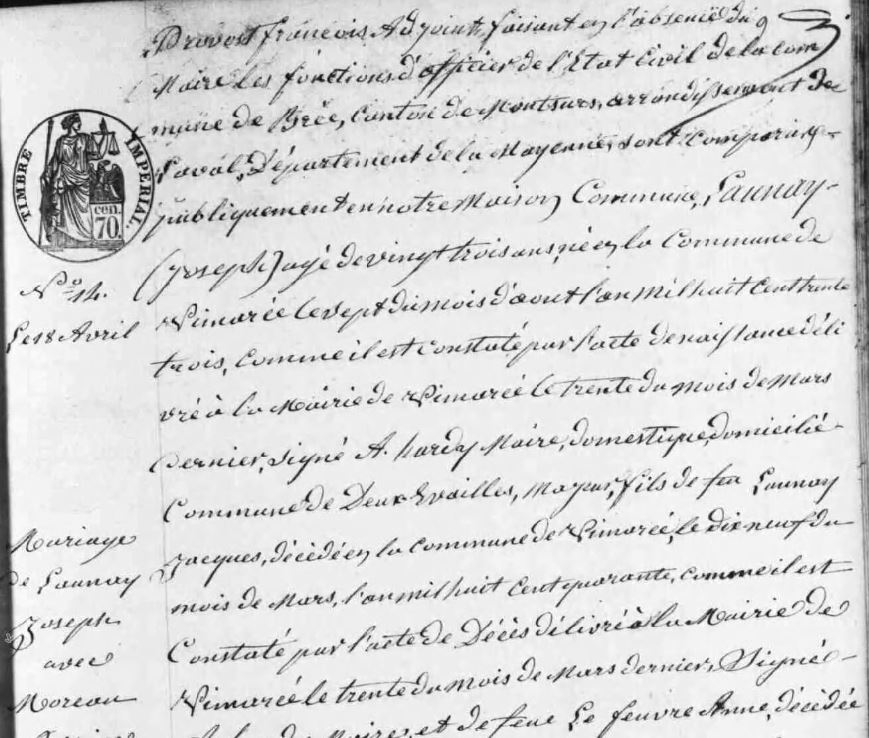 Joseph Launay, né vers 1833, à Vimarcé (Mayenne), fut orphelin à l’âge de 7 ans.