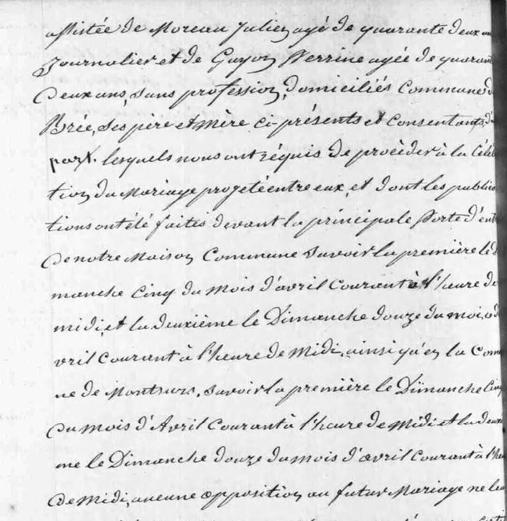 A l’âge de 23 ans, il est domestique et se marie à Perrine Moreau, une journalière de trois ans sa cadette. Ils vivent alors à Brée (Mayenne) mais le couple, suivant le travail disponible, connaîtra de nombreux déménagements intra-départementaux, notamment à Montsûrs, Deux-Évailles et Saint-Christophe-du-Luat.