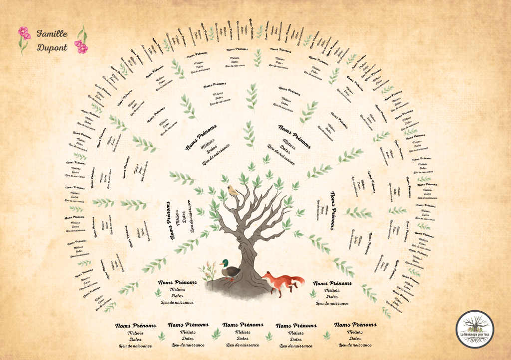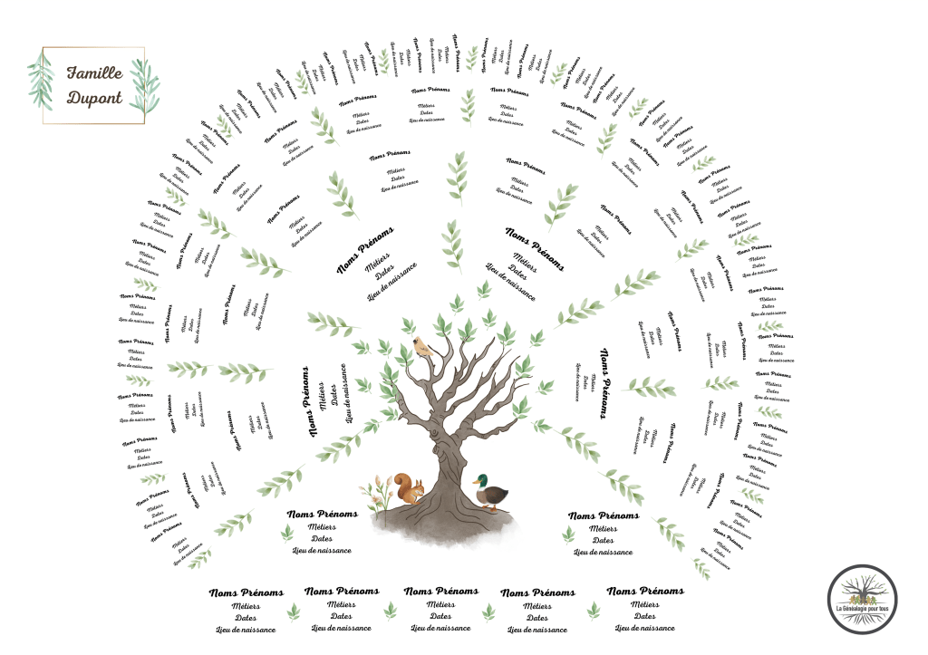 - 5 générations (30 ancêtres) : 525 euros